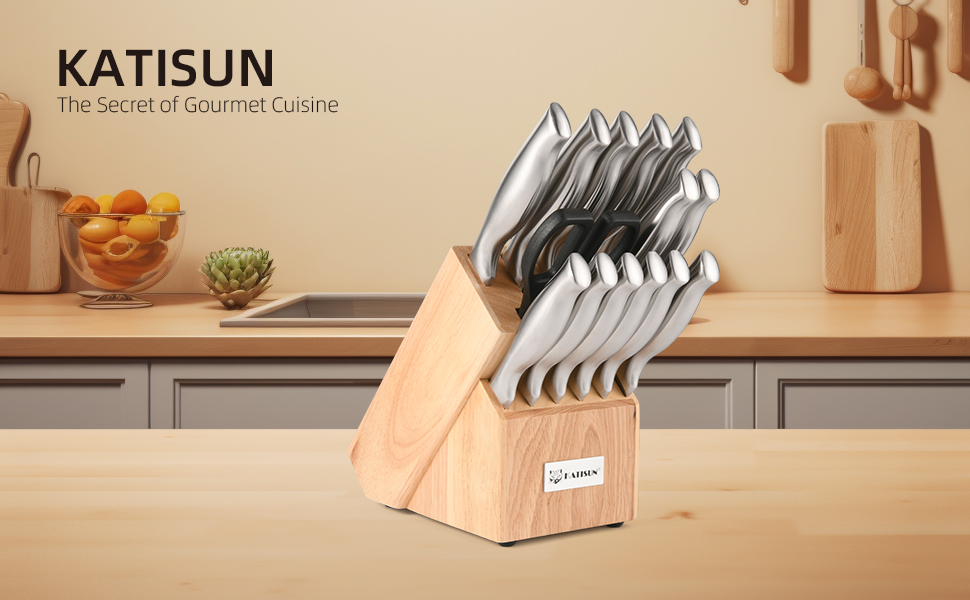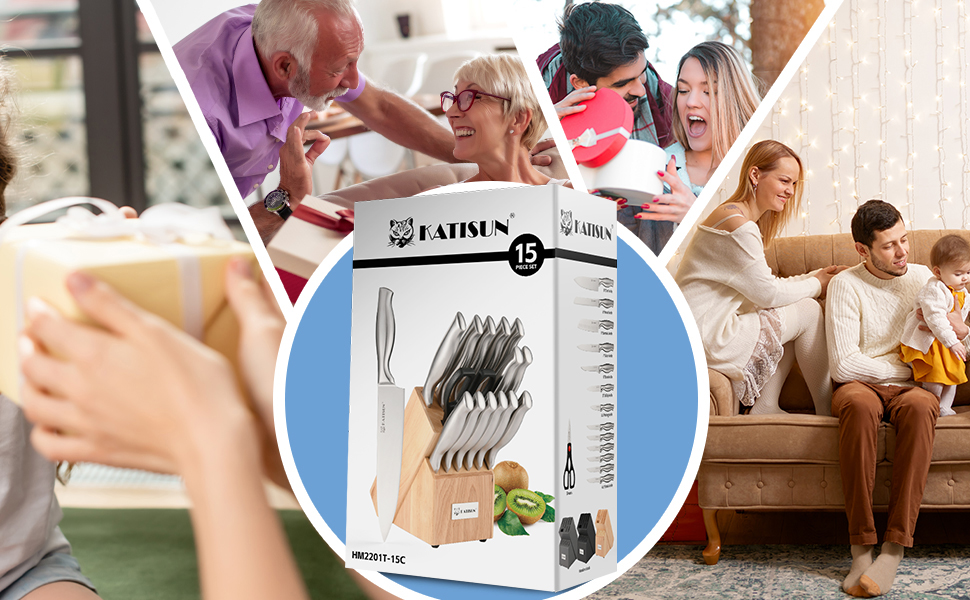Kitchen Knife Set, 15 Pieces Knife Set With Block, Knives Set For Kitchen, Silver Hollow Ergonomic Handle For Chef Knife Set, Kitchen Shears,Black Knife Block Set, HM2201T-15B